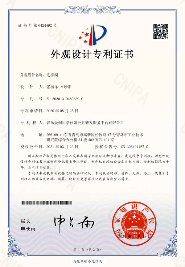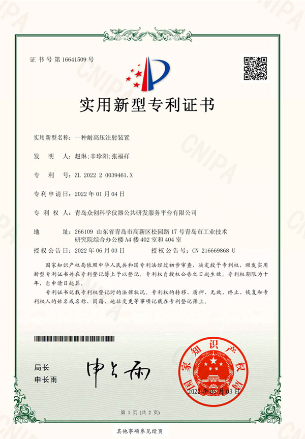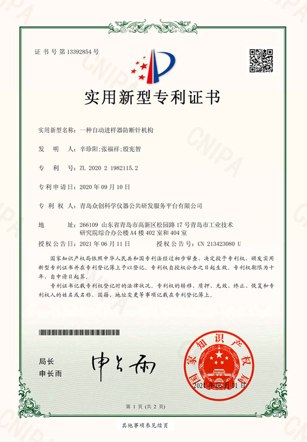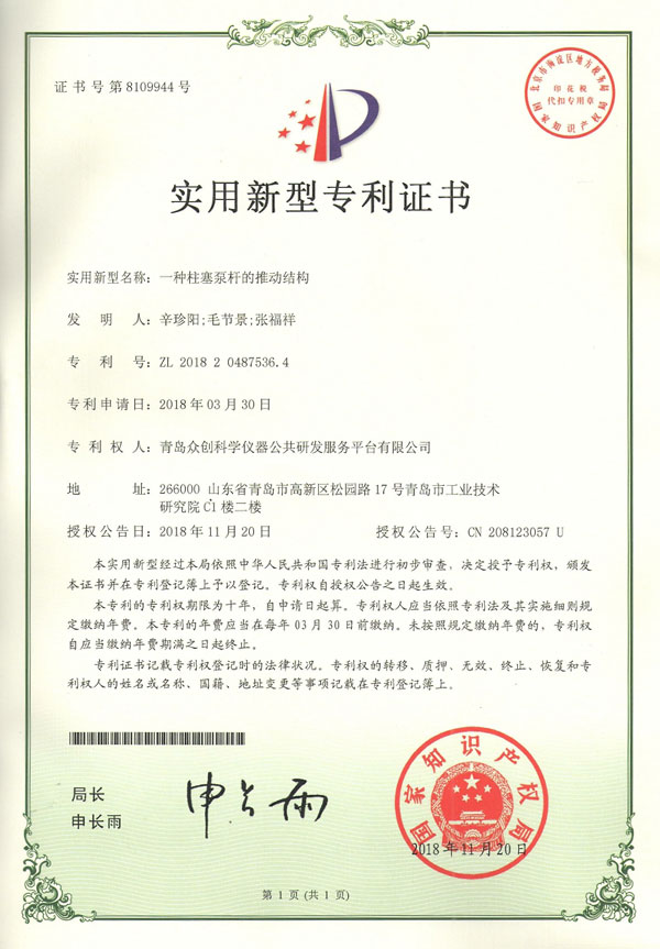 平臺(tái)研發(fā)團(tuán)隊(duì)已開(kāi)展了科學(xué)儀器關(guān)鍵部件高壓液相泵、電磁閥、色譜分離柱管等的研發(fā)工作,均已取得重要階段成果,已授權(quán)多項(xiàng)實(shí)用新型、軟件著作權(quán)等專利。